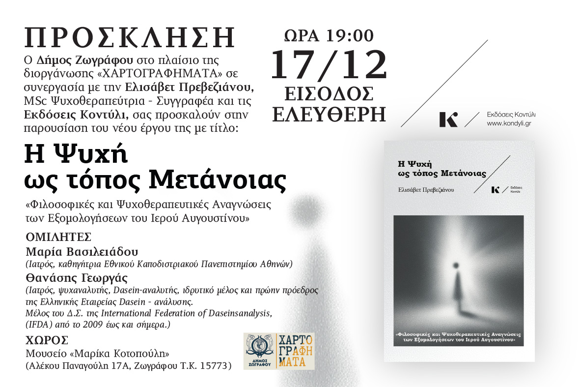 Παρουσίαση του νέου βιβλίου της Ελισάβετ Πρεβεζιάνου “Η Ψυχή ως Τόπος Μετάνοιας” στο Δήμο Ζωγράφου