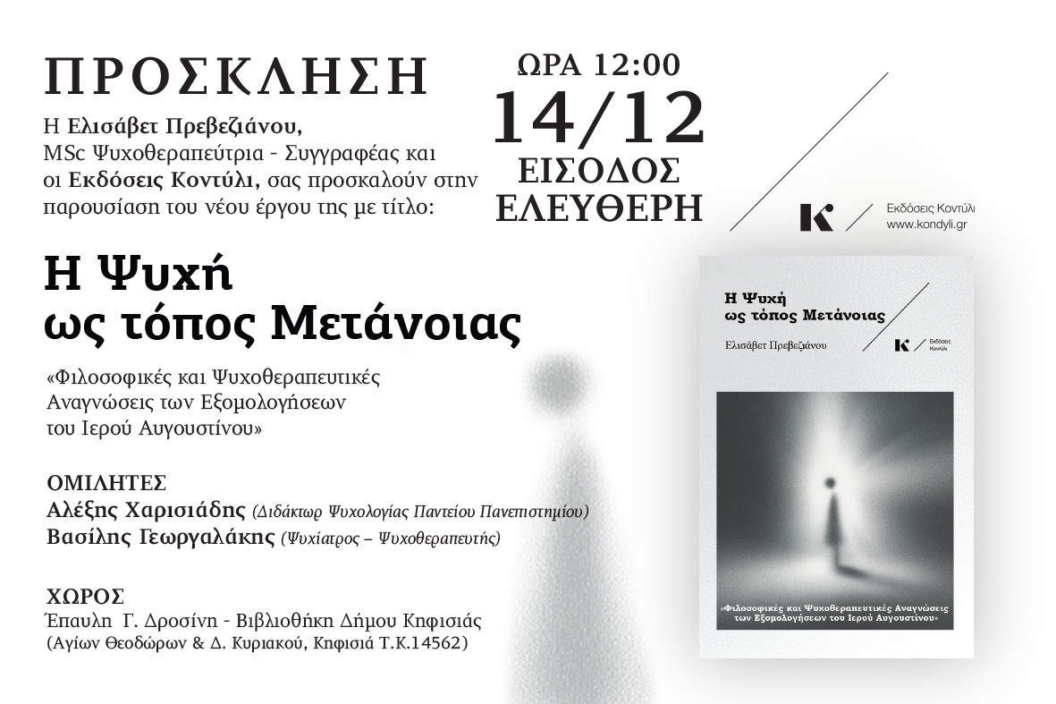 Παρουσίαση του νέου βιβλίου της Ελισάβετ Πρεβεζιάνου “Η Ψυχή ως Τόπος Μετάνοιας” στην Κηφισιά