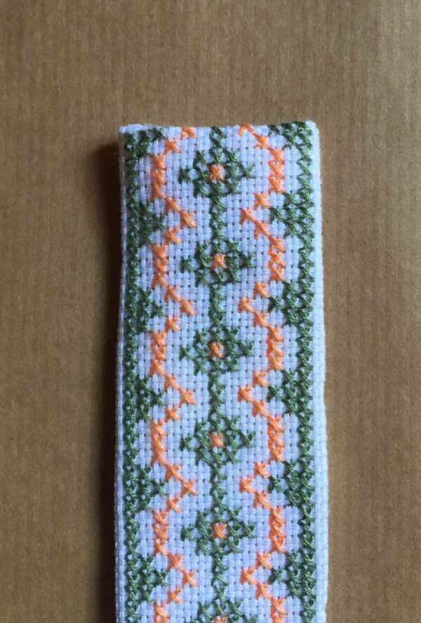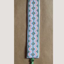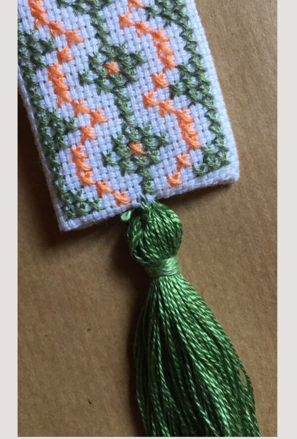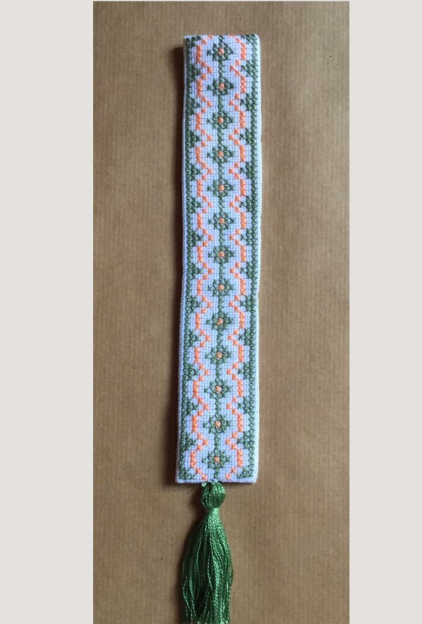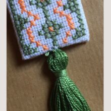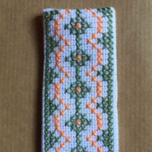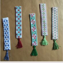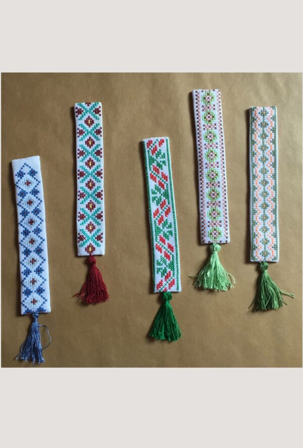Χειροποίητοι σελιδοδείκτες σε εταμίν ύφασμα, διακοσμημένοι με την τεχνική της σταυροβελονιάς.