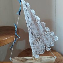 Διακοσμητικό καραβάκι από φυσικό ξύλο με πανί από πλεκτά μοτίφ