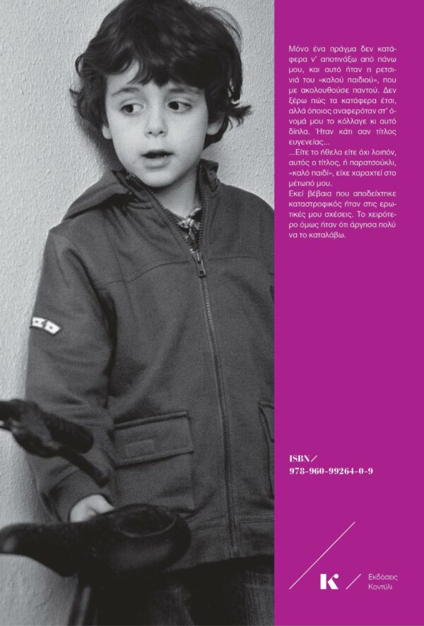 Μόνο ένα πράγμα δεν κατάφερα ν’ αποτινάξω από πάνω μου, και αυτό ήταν η ρετσινιά του «καλού παιδιού», που με ακολουθούσε παντού. Δεν ξέρω πώς τα κατάφερα έτσι, αλλά όποιος αναφερόταν στ’ όνομά μου το κόλλαγε κι αυτό δίπλα. Ήταν κάτι σαν τίτλος ευγενείας…